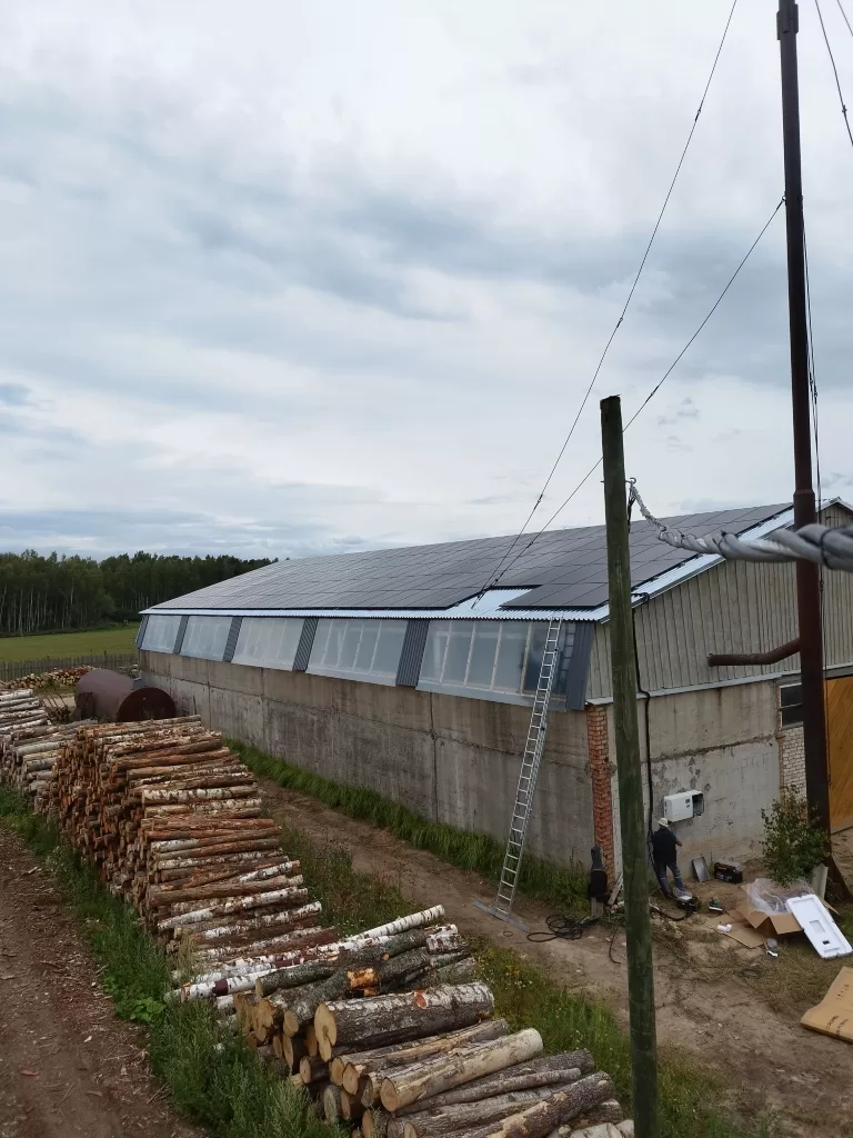 Viļāni mums ir īpaši mīļi, jo te mums ir daudz klientu, te viens no viņiem. Konkrētajam klientam pieder kokzāģētava un granulu ražotne ar lielu elektrības pašpatēriņu. Klientam tika uzstādīta industriāla saules paneļu sistēma ar elektrisko skaitītāju “Meter”. Tas nozīmē, ka klients var izvietot vairāk saules paneļus un ņemt no tiem elektro enerģiju vairāk, nekā ir atļautā tīklā nododamā enerģija, jo klientam atļauts tīklā nodot ne vairāk kā 20 kw stundā. Proti, ja atļauja nodot tīklā ir 20 kw, bet tu uzstādi 66 kw, ar meter palīdzību tu varēsi patērēt visus 66 uzstādītos kw, bet tīklā aizies ne vairāk kā atļautie 20 kw.