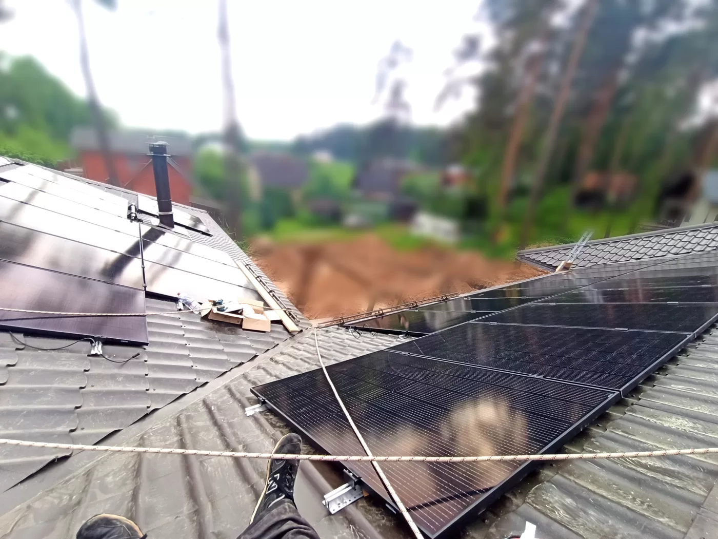 Jau sākuma stadijā, klients izvēlējās uzstādīt saules paneļu komplektu uz jaunbūves izvēloties “Bifacial,” jeb divpusējos saules paneļus. Uzstādot paneļus jaunbūvei ir daudz ieguvumu, vienkāršāk izvadīt kabeļus, izplānot iekārtu izvietojumus, rezultātā iegūstot daudz estētiskāku produktu.