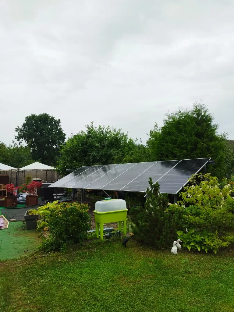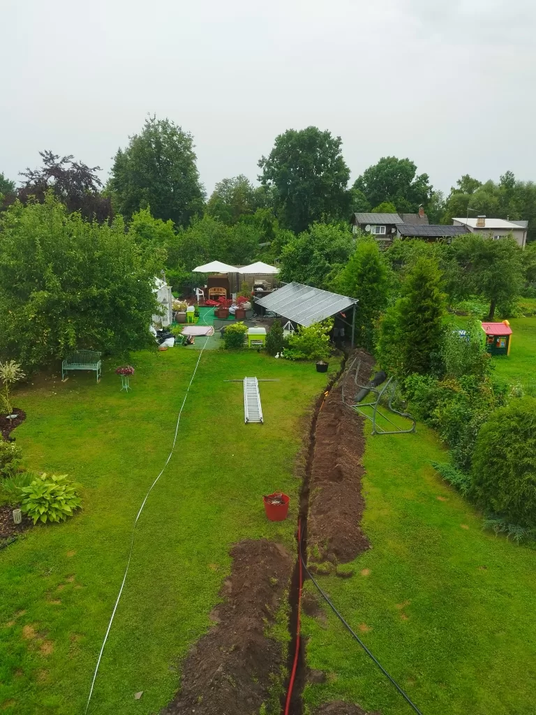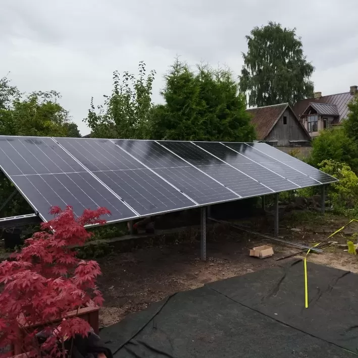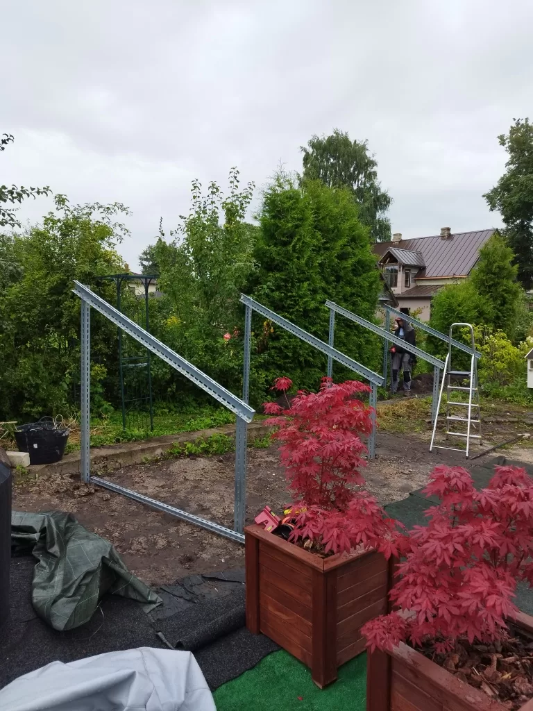 Klientam pieder privātmāja ar 700 m2 zemes platību. Vietas maz, taču uz jumta arī likt nevar, jo jumts jāmaina. Ņemot vērā klienta elektrības patēriņu tika izvēlēta konstrukcija uz zemes ar attiecīga skaita Bifacial saules paneļiem. Papildus aizvadījām ūdens trubu uz piknika zonu un piekārtojām klienta elektro sistēmu drošai tālākai lietošanai. Sākotnēji klients plānoja nākotnē saules paneļus pārcelt uz jumtu, kad tiks veikta tā nomaiņa, taču tagad, redzot daudzos zemes saules paneļu konstrukcijas plusus šo ieceri ir atcēlis.